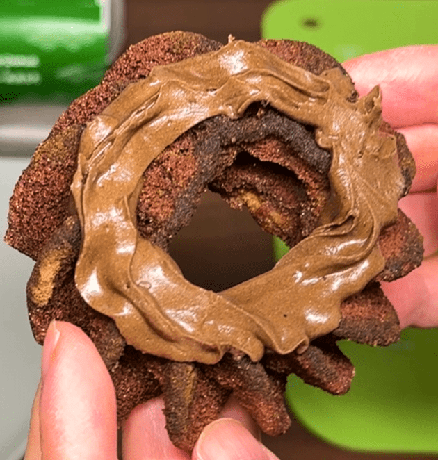 しかも、このドーナツ、上下で形がテレコ(上下逆)になっていて、どこから食べてもコーティングの抹茶チョコが味わえる仕掛け。